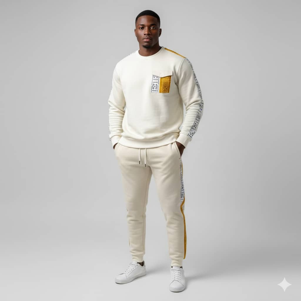 - Name: Ankara-accent Unisex 2pc set (Cream)