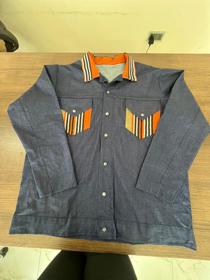 • Summary: A statement Jean Jacket and Pants designed with a touch of Asooke print for stylish and casual days.